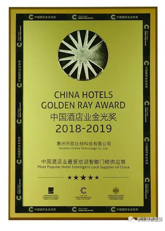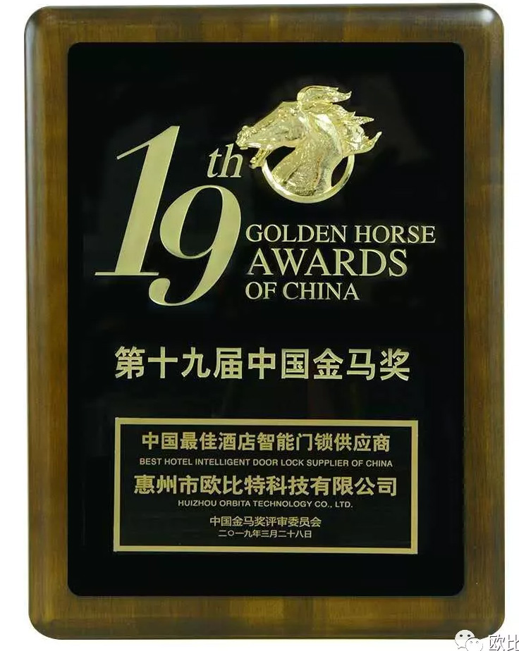 欧比特作为中国具备规模的智能门锁工厂,第19届中国金马奖“中国最佳酒店智能门锁供应商”,第5届中国酒店业金光奖“中国酒店业最受欢迎智能门锁供应商”,欧比特科技参加本次展会,并获得圆满成功!
